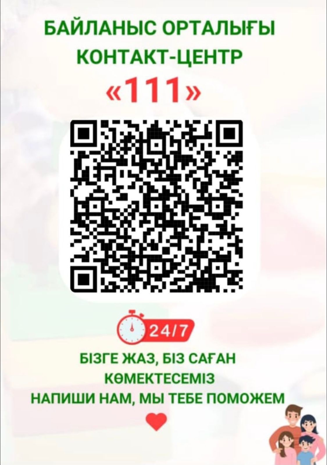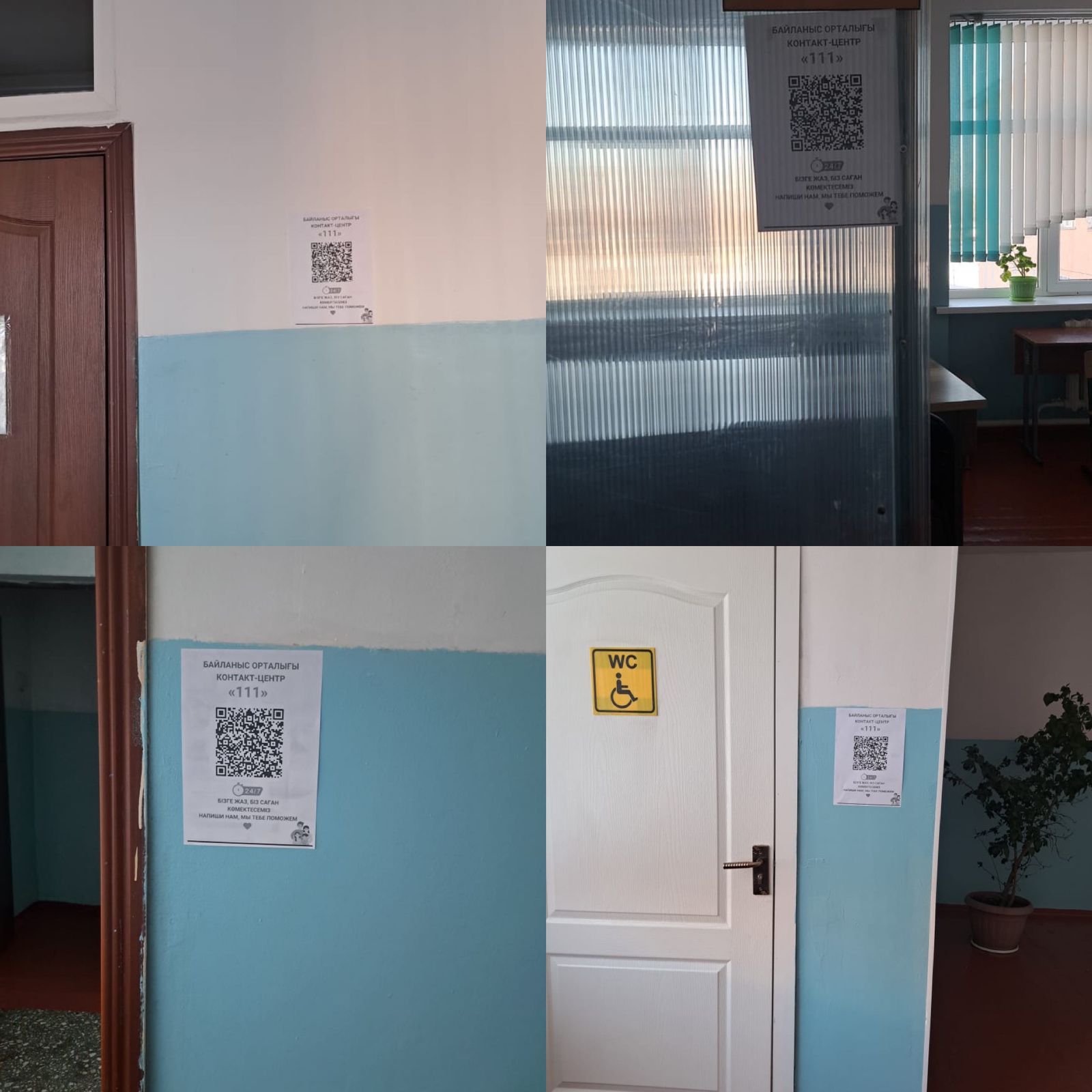 Мектеп-лицейінің әр қабатында,дәліздерде,сынып бөлмелерінде оқушыларға арналған сенім телефоны болып белгіленген 111 байланыс телефоны QR парақшалары ілінді.
